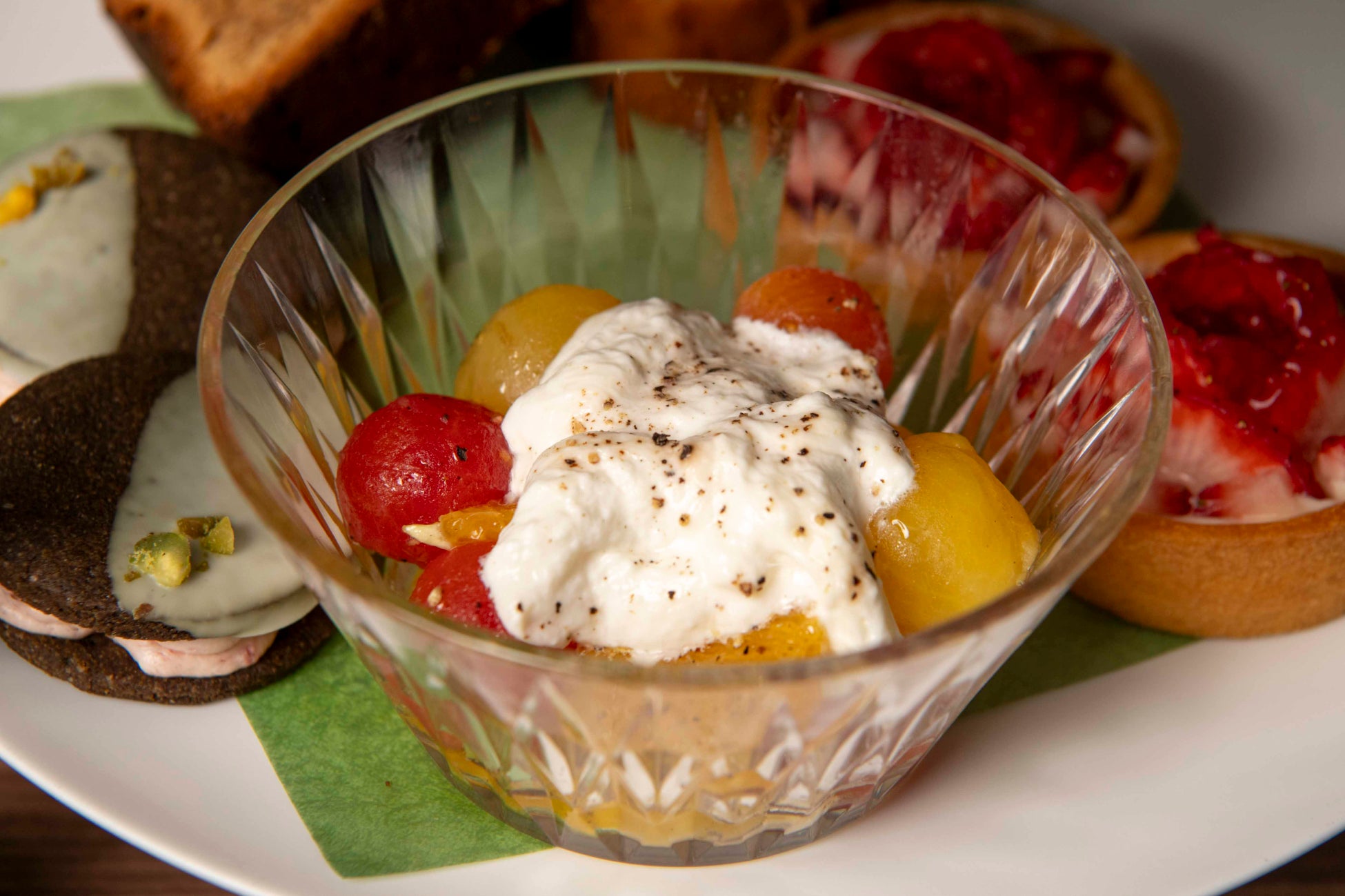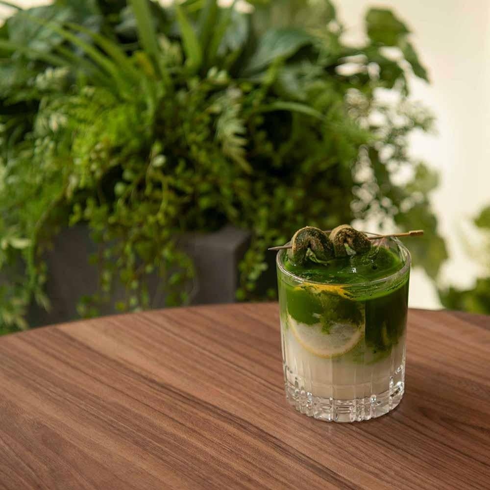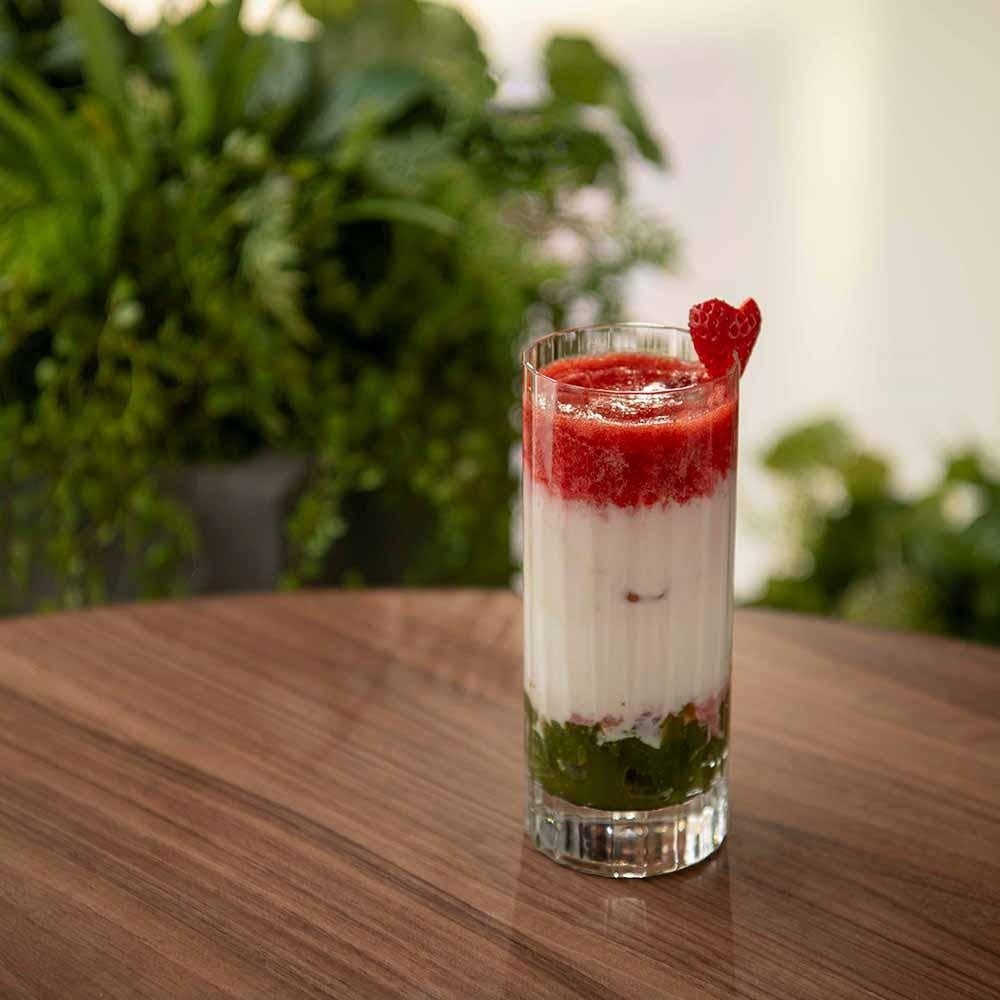 自然な甘みの甘酒に抹茶を合わせ爽やかなレモンの風味をアクセントに加えました。自家製・抹茶わらび餅など日本の食材を使用したさまざまな優しい味わいが楽しめる一杯。