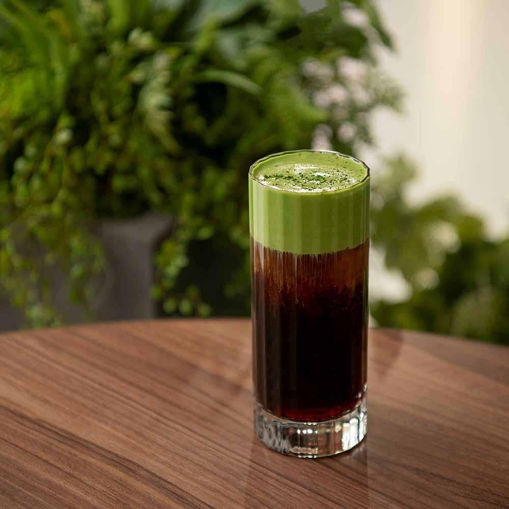 ダークチョコレートのようなコクがあるエスプレッシーヴォブレンドを使用したアメリカーノに、ミルキーな抹茶クリームをトッピング。コーヒー・抹茶それぞれの活力に満ちた豊かな風味が口いっぱいに広がります。