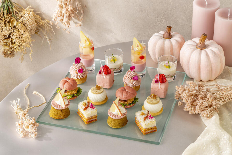 本アフタヌーンティーは、さつまいもや栗、かぼちゃなど秋の味覚を贅沢に取り入れたスイーツとセイボリーを、淡いピンクを基調とした優しい世界観でお楽しみいただける企画です。